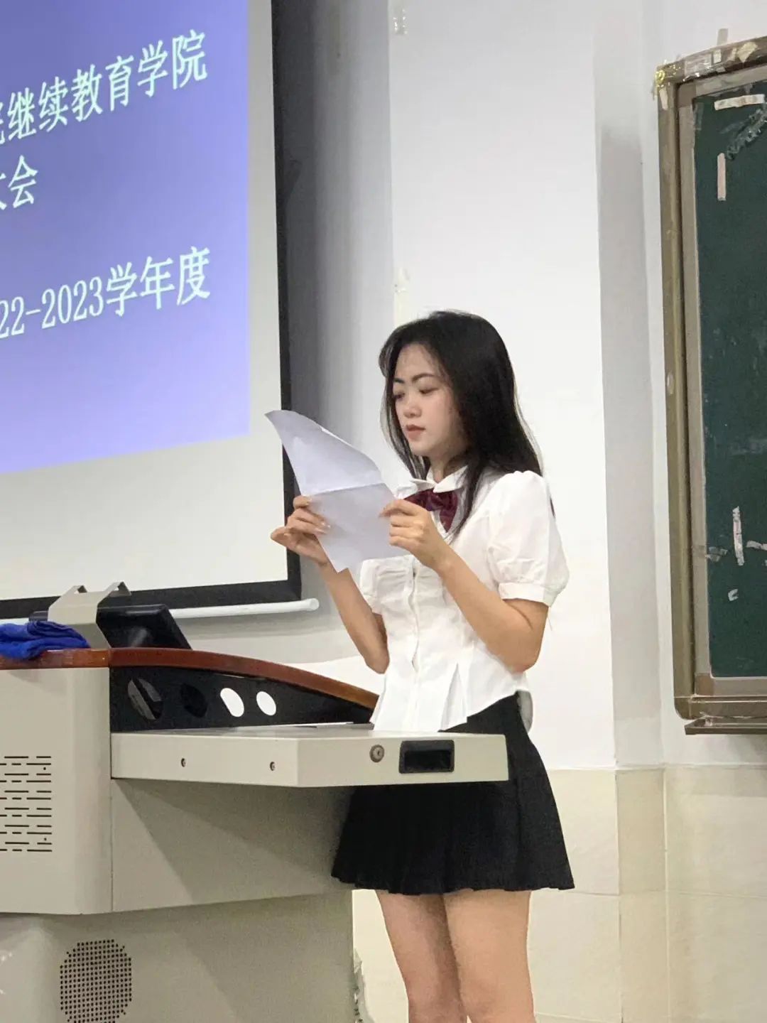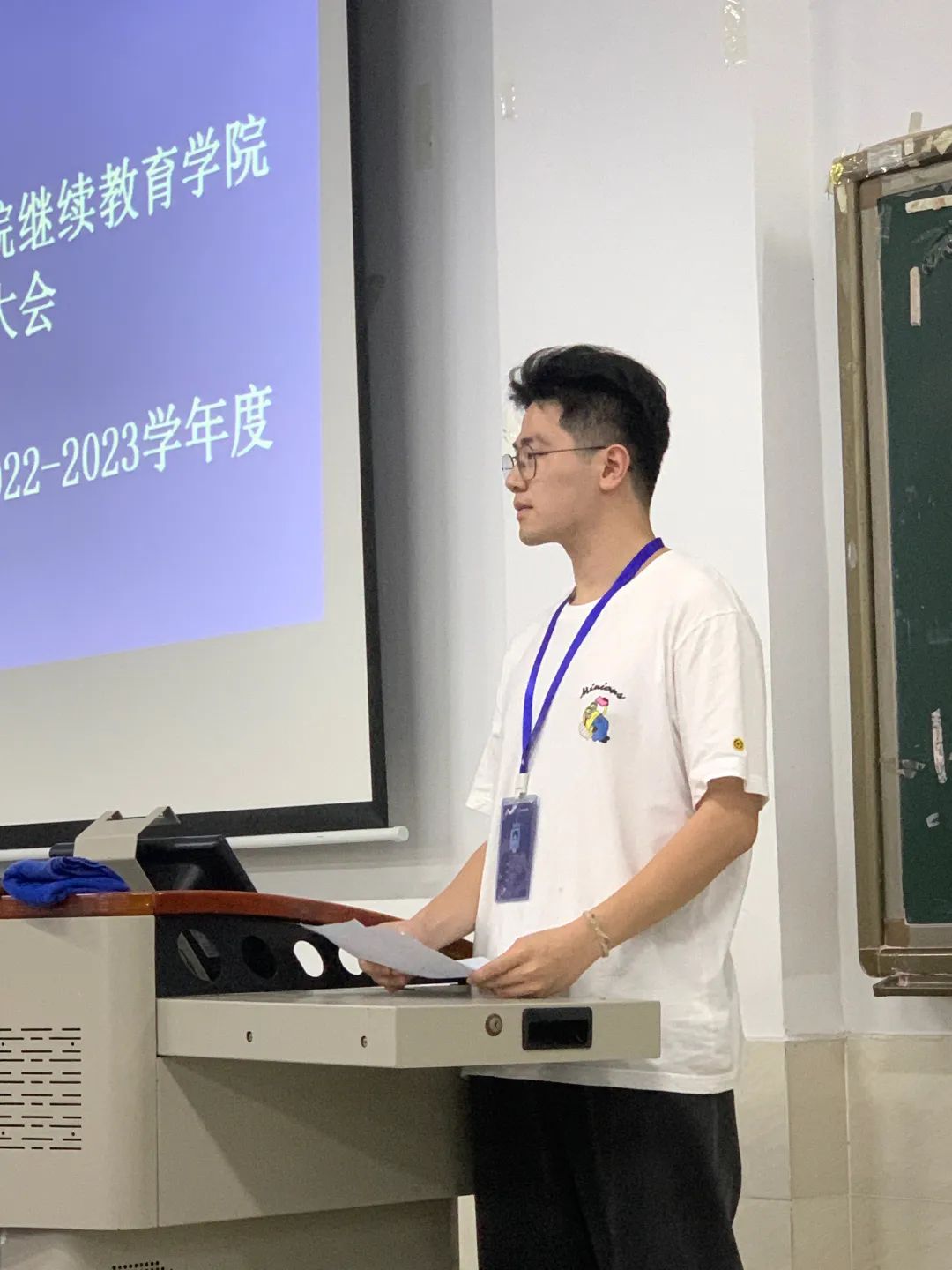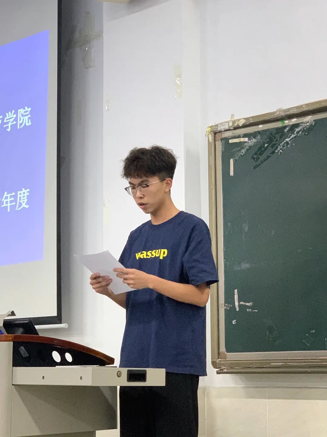 纪检部部长符诘其同学做述职讲话