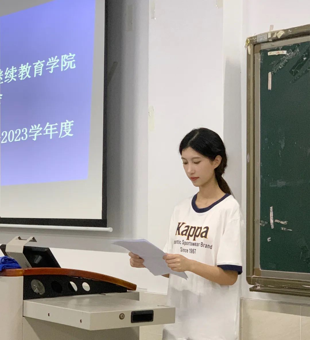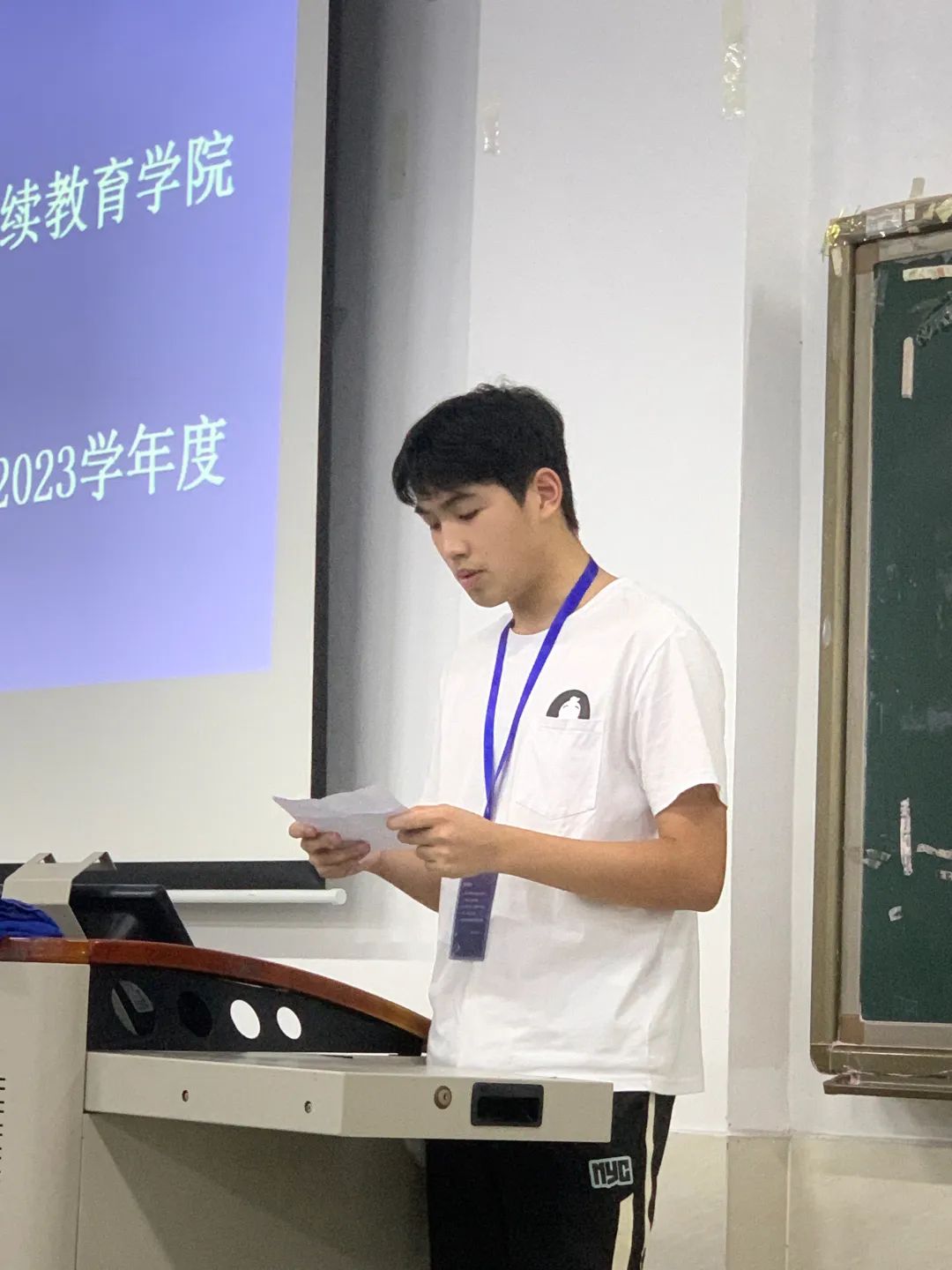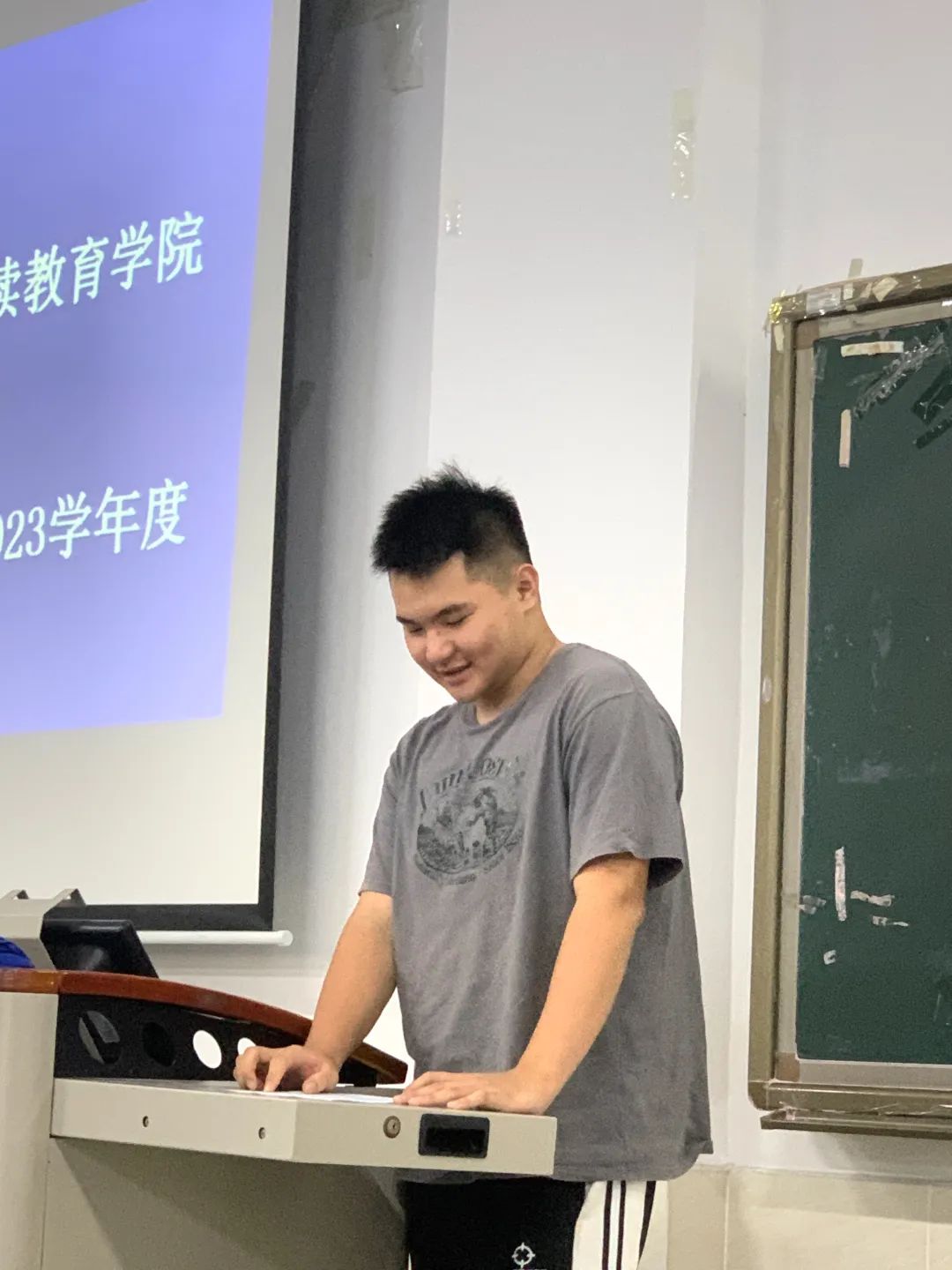 纪检部部长符诘其同学做述职讲话