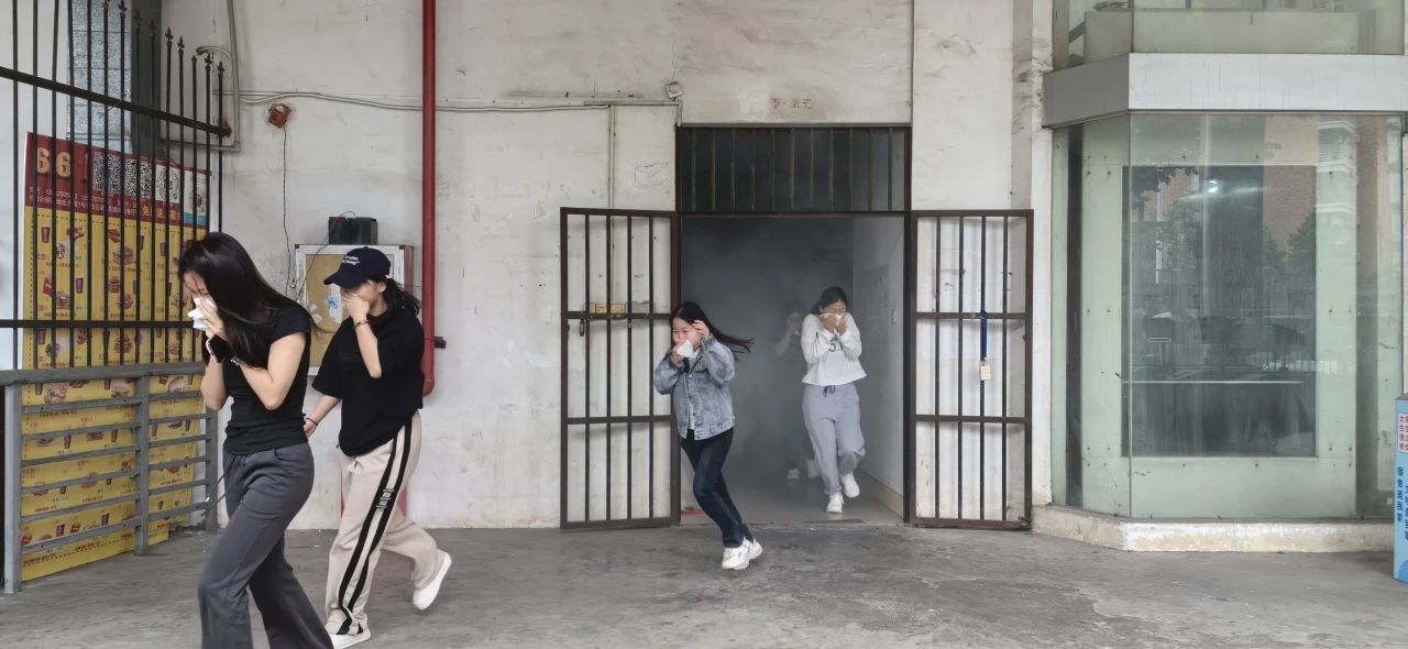 随着消防警报声响起,宿舍消防安全应急疏散演练活动正式开始。在楼层辅导员及学生干部的指引下,学生迅速用湿毛巾捂住口鼻,弯腰俯身,迅速撤离宿舍,按照预定的疏散路线有序快速下楼,撤离到指定安全点集合。各辅导员共同清点人数,确保无一人遗漏,整个疏散过程有条不紊,井然有序。
