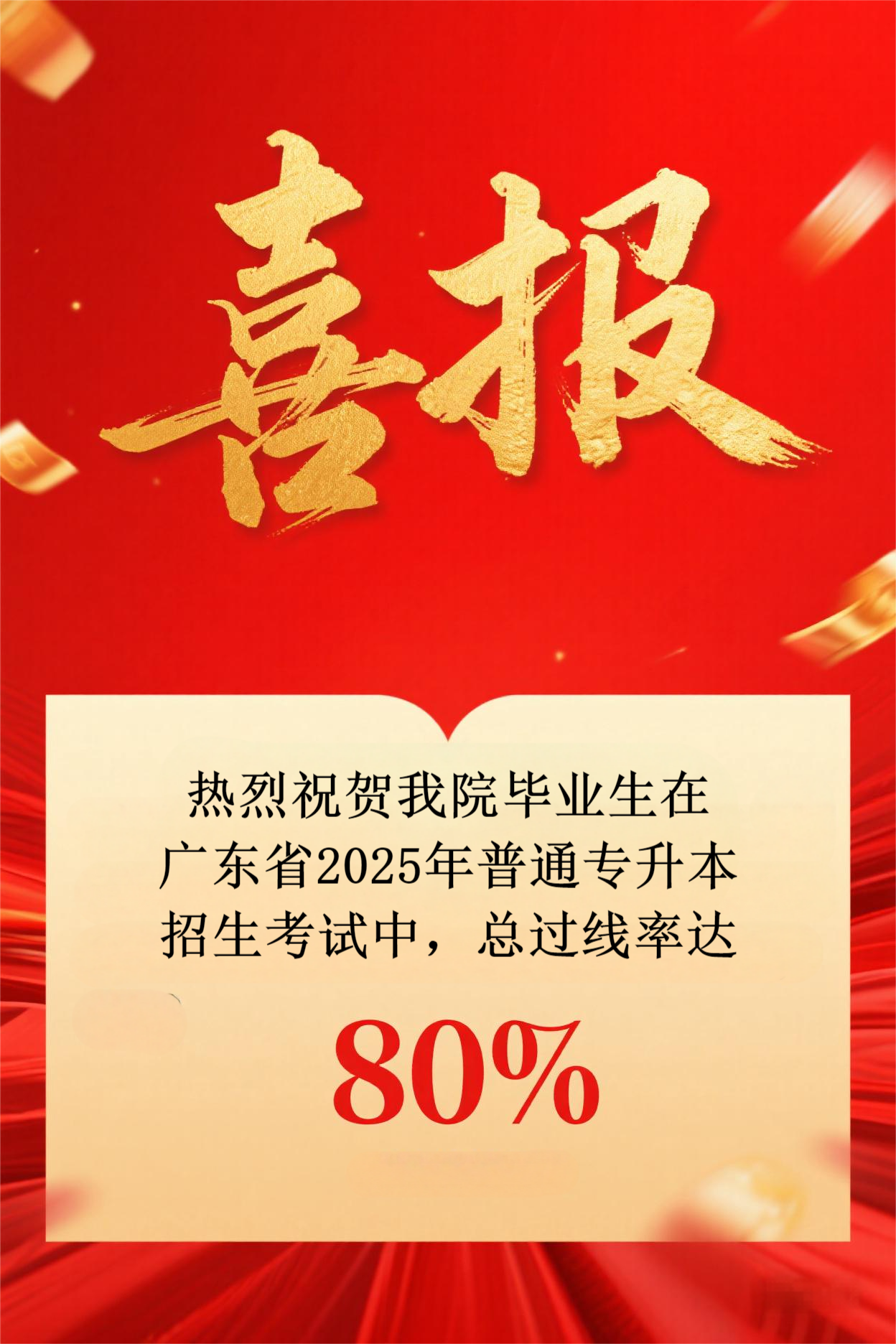 热烈祝贺我院毕业生在2025年广东省普通专升本考试中再创佳绩!总过线率高达80%,远超全省平均水平!这一耀眼成绩的背后,是学院多年来深耕定向培养的匠心坚守,是师生携手奋进的必然回报,更是我院学子逐梦全日制本科的实力见证!